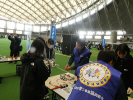 令和7年10月27日(月)、28日(火)の2日間、つどーむにおいて「出張お仕事体験会」が開催され、親会からの協力要請があり、青年部から4名が従事しました。 本イベントは、地域のインフラを支える建設業に触れる機会を提供し、中学生や教職員への建設業界の理解促進と工業系高校などへの進学や就職に繋げることを目的として開催されており、今年度は18団体が出展する中、札管協はステンレス管の組立作業を行い、中学生に対し工具の使い方から管の接合について指導しました。 この日はあいにく天気が悪く、小雪が舞う肌寒い日ではありましたが、学生の皆さんは、熱心に説明を聞き、皆と協力し合い積極的に参加して寒さを感じさせない姿が印象的でした。 また、組立作業に興味を持った学生から進学先の一つとして「学校のパンフレットが欲しい」という声を聞くことができたことが何より嬉しく思いました。 これをきっかけに、将来管工事業の道に進んでくれる学生がひとりでも多く出てきてくれることを願い2日間を終えました。