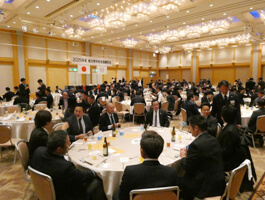 懇親会では、本総会実行委員長である渡辺副会長が、開会挨拶で「北海道はこの一年間、本当に色々なことがありましたが、今日と言う日を迎える事ができたことを大変喜ばしく感じております」と大会への熱い思いを語りました。そして会長挨拶では、太田新会長から「生まれた北海道で会長になれたことに運命を感じる」と開催地との深い縁について語られました。それから全管連会長の藤川幸造様、北海道建設部建設局長の大野雄一様、札幌副市長の吉岡亨様より祝辞を頂き、札幌市水道局水道事業管理者の三井一敏様による乾杯で祝宴がスタートしました。