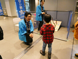 ご来場の方が会場まで安心して移動できるよう、全員でオリジナルTシャツと法被を着用し、プラカードを持って案内を行いました。また、記念講演の受付や懇親会場へのアテンドなど、様々な場面で会場サポートいたしました。