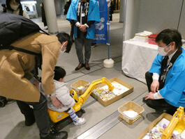 ▲「乗用ショベルカーお菓子すくい」の様子